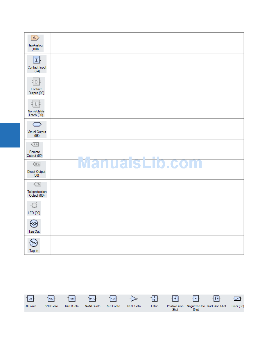 These symbols are used to create FlexLogic Equations. Use them as intermediate logic for the Virtual Output equations.