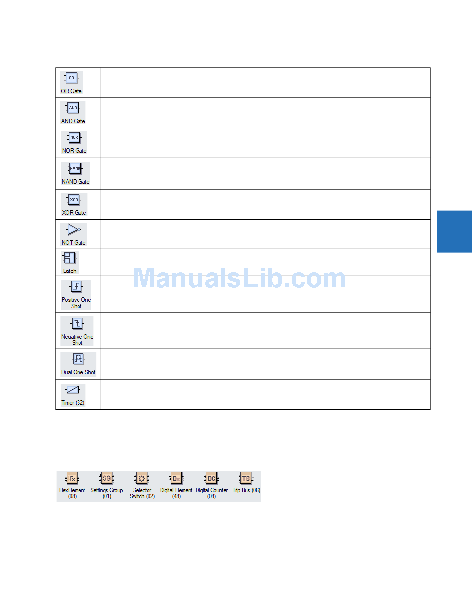 These blocks configure properties of the element or use element operands as input to FlexLogic equations.