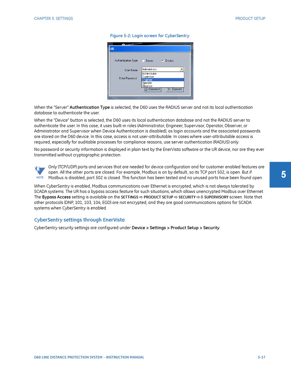 SCADA systems. The UR has a bypass access feature for such situations, which allows unencrypted Modbus over Ethernet.
