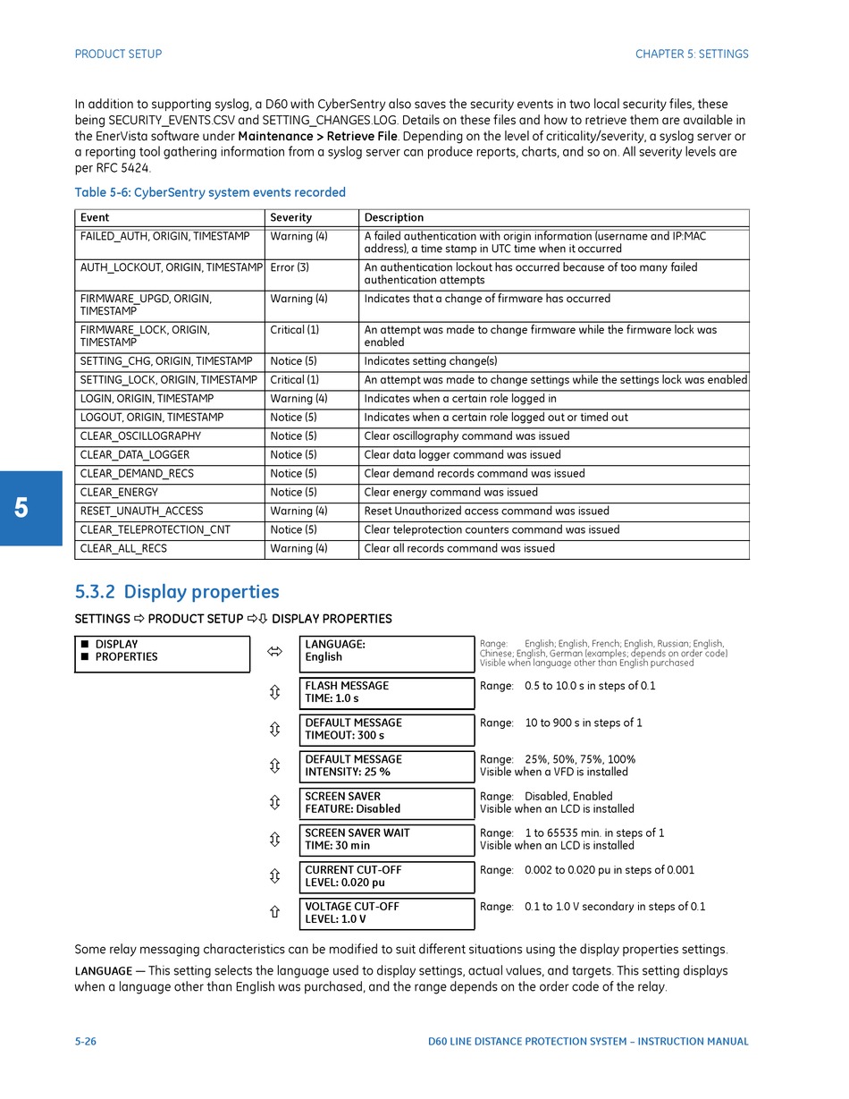 the EnerVista software under Maintenance > Retrieve File. Depending on the level of criticality/severity, a syslog server or