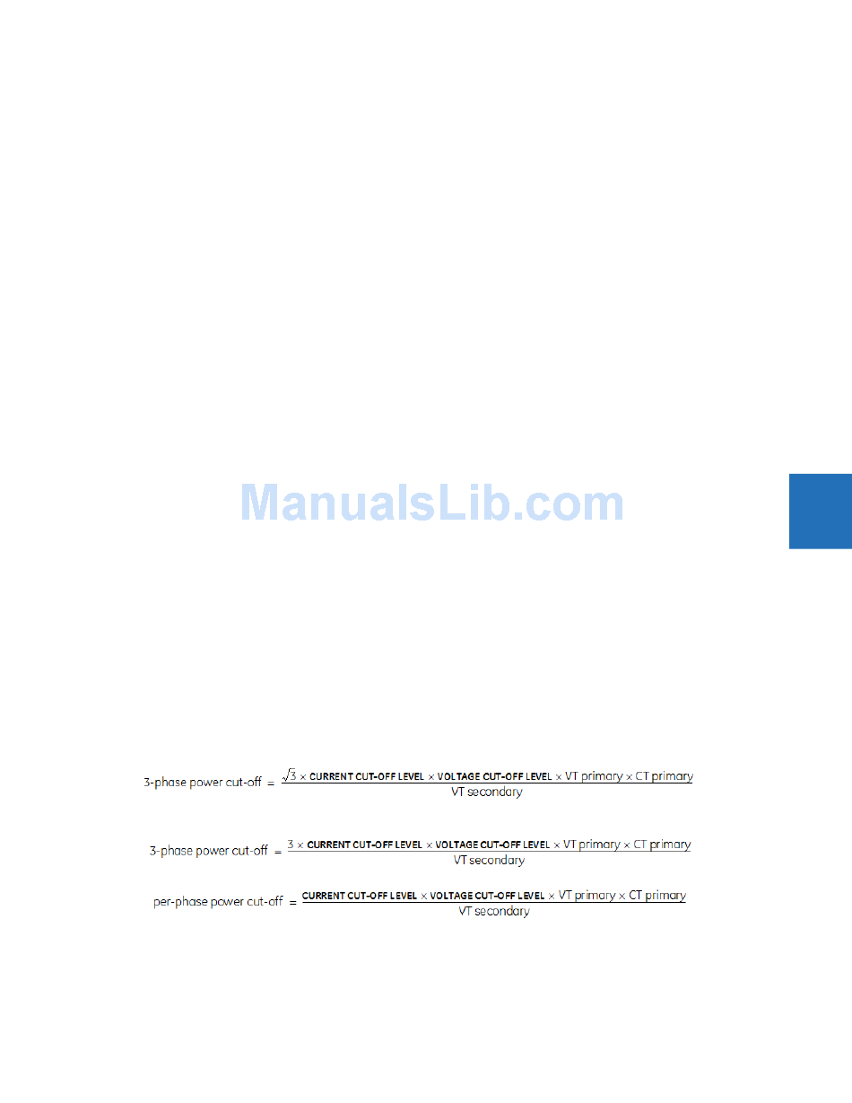 power cut-off level is calculated using the following equations. For Delta connections: