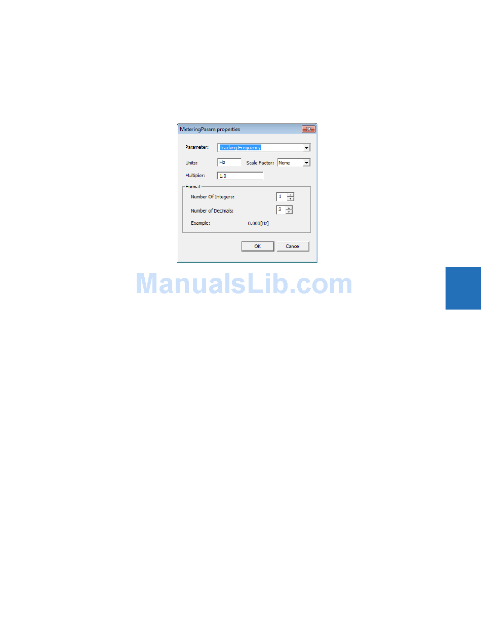 This setting allows the user to specify the scaling factor for the metering units value. Options depend on the Parameter.