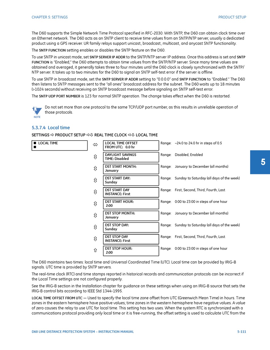 is "Enabled," the D60 attempts to obtain time values from the SNTP/NTP server. Since many time values are