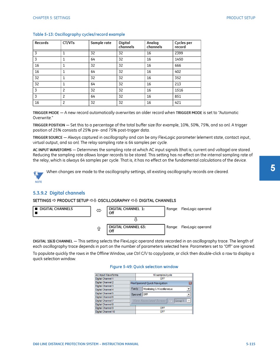 SETTINGS PRODUCT SETUP OSCILLOGRAPHY DIGITAL CHANNELS