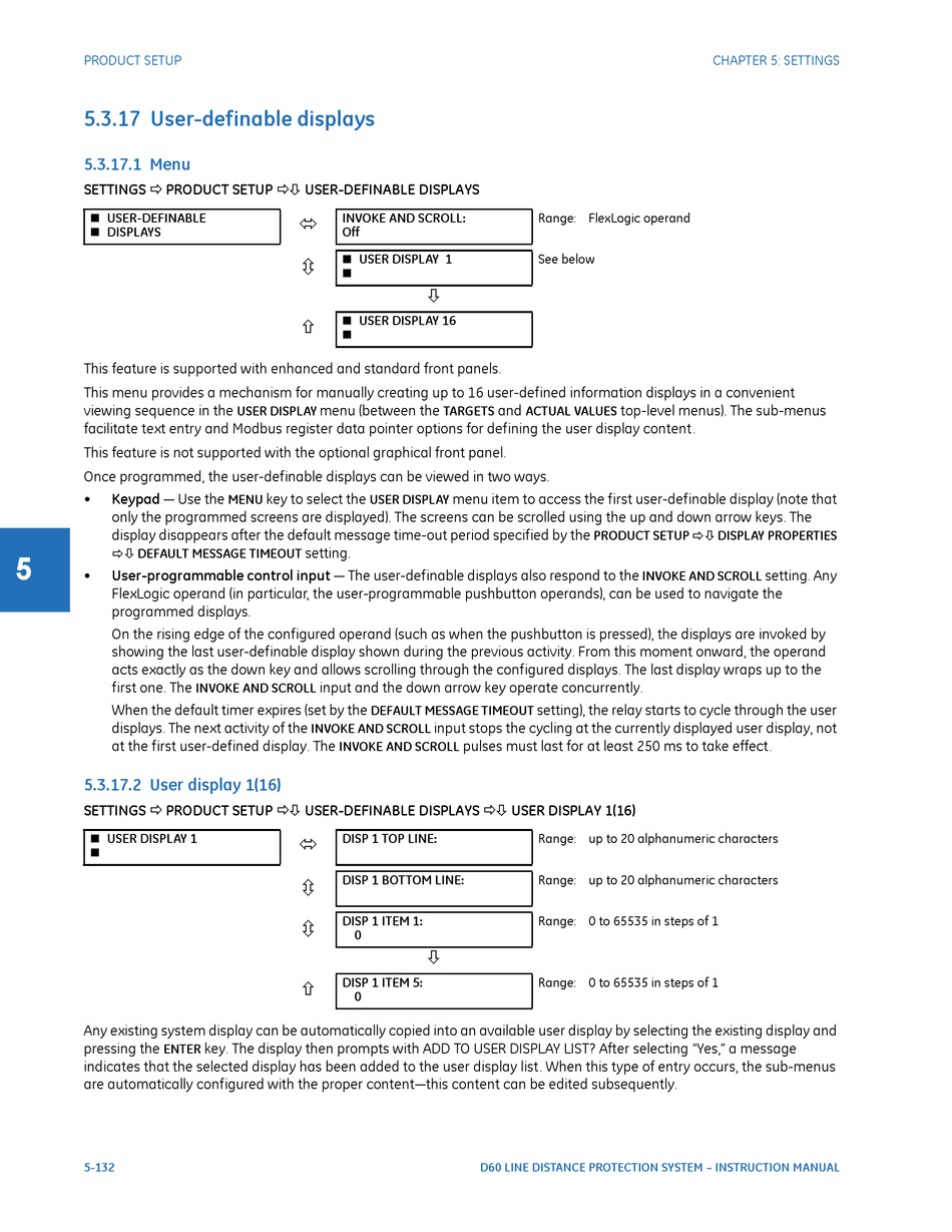 SETTINGS PRODUCT SETUP USER-DEFINABLE DISPLAYS USER DISPLAY 1(16)