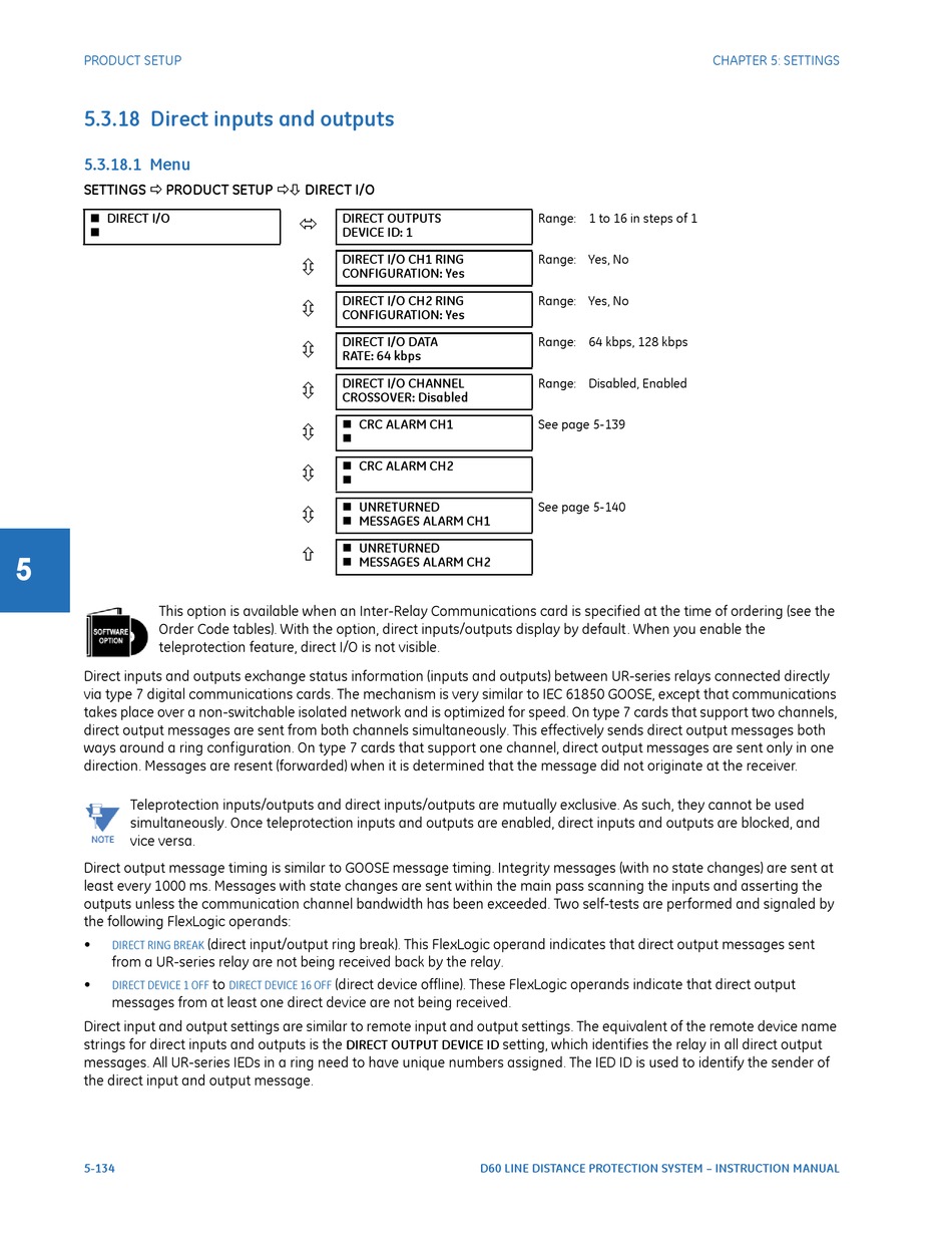 teleprotection feature, direct I/O is not visible.