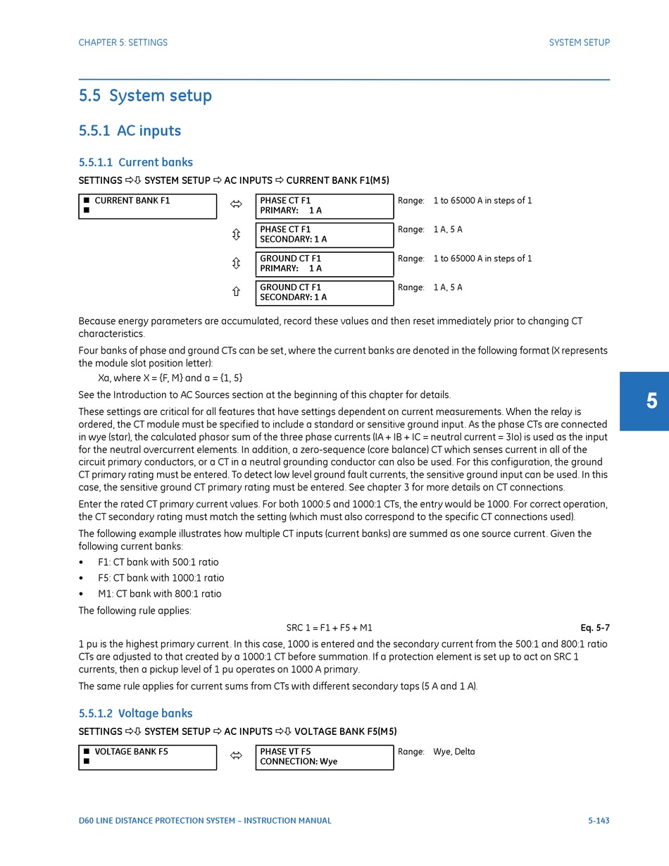 SETTINGS SYSTEM SETUP AC INPUTS CURRENT BANK F1(M5)