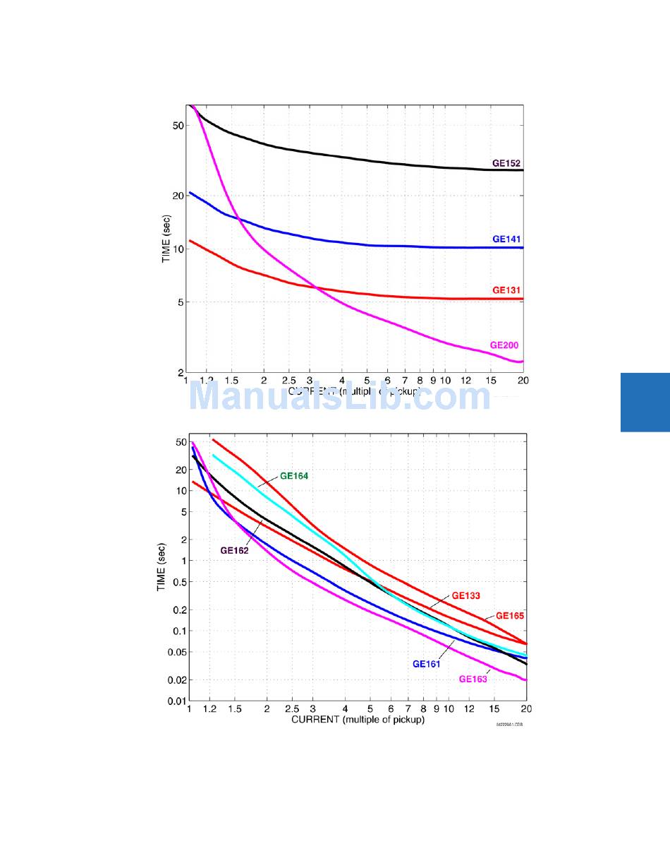 Figure 5-81: Recloser curves GE131, GE141, GE152, and GE200