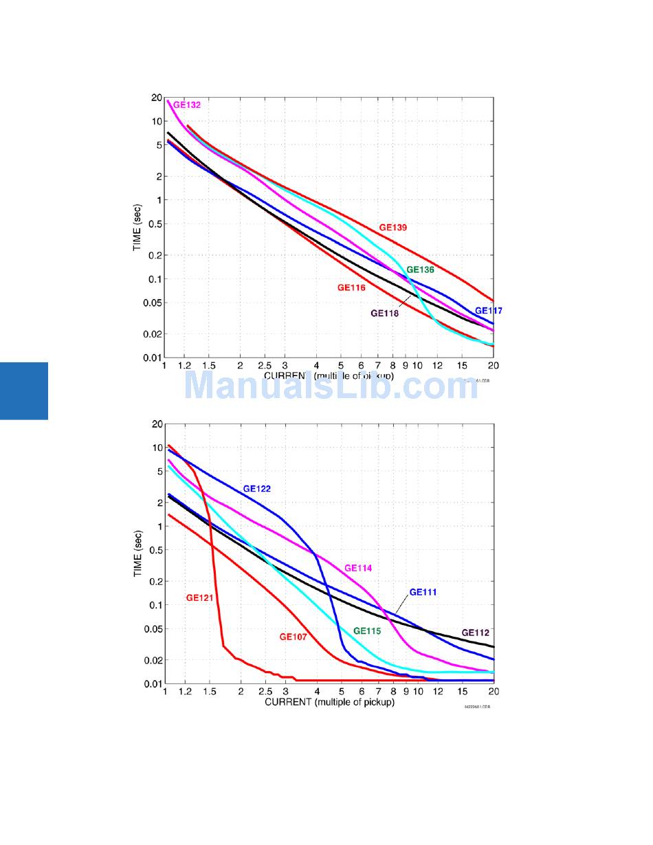 Figure 5-83: Recloser curves GE116, GE117, GE118, GE132, GE136, and GE139