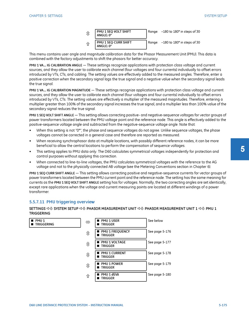 introduced by VTs, CTs, and cabling. The setting values are effectively added to the measured angles. Therefore, enter a