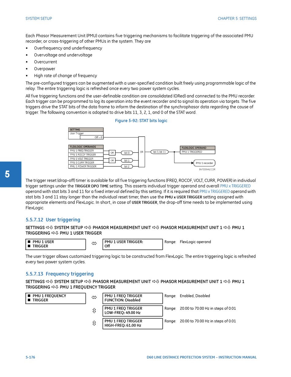 Each Phasor Measurement Unit (PMU) contains five triggering mechanisms to facilitate triggering of the associated PMU