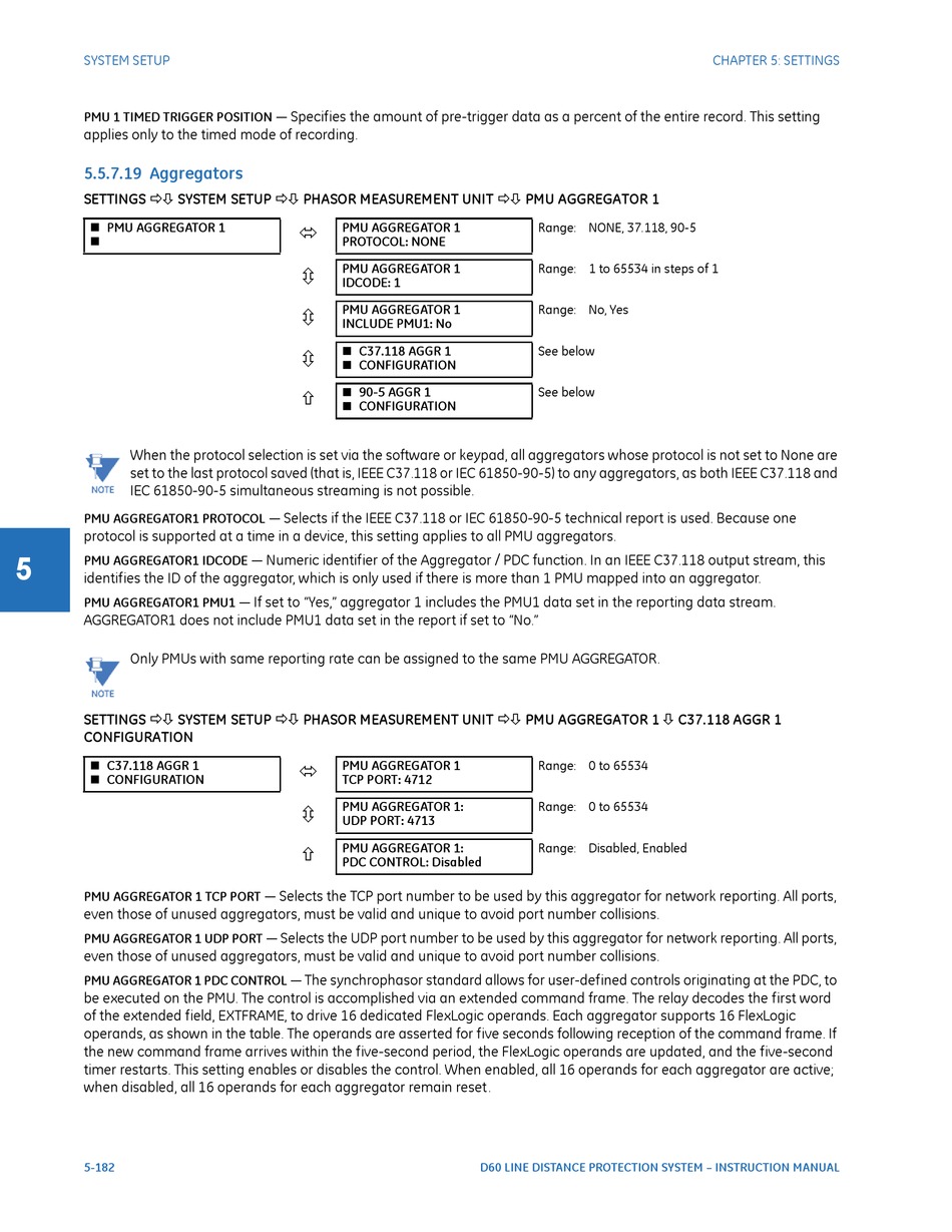 SETTINGS SYSTEM SETUP PHASOR MEASUREMENT UNIT PMU AGGREGATOR 1 C37.118 AGGR 1
