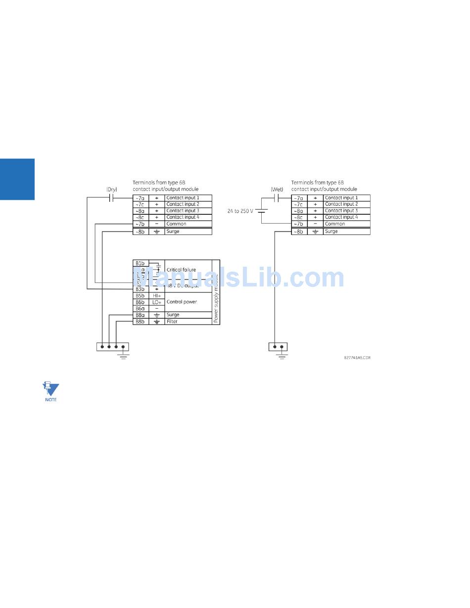 contact is connected to the required contact input terminal. If a wet contact is used, then the negative side of the external