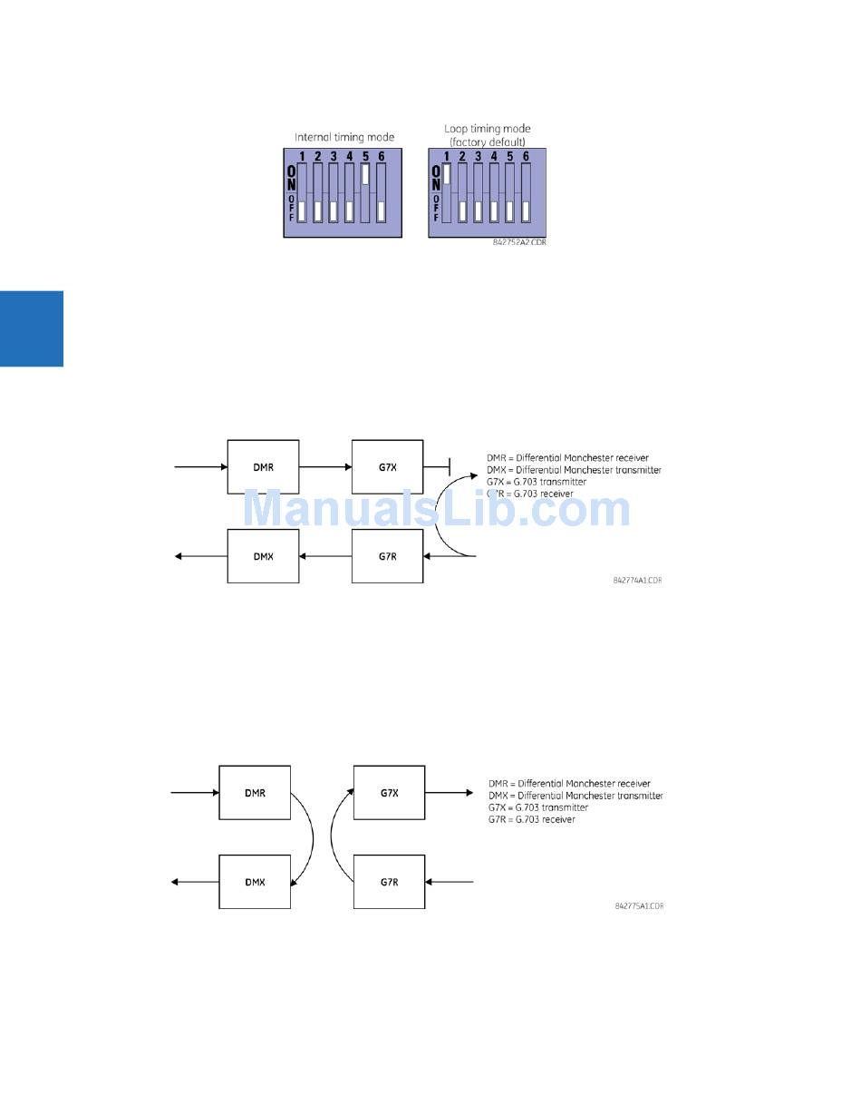 Likewise, G.703 data enters the G.703 receiver module and is passed through to the G.703 transmitter module to be