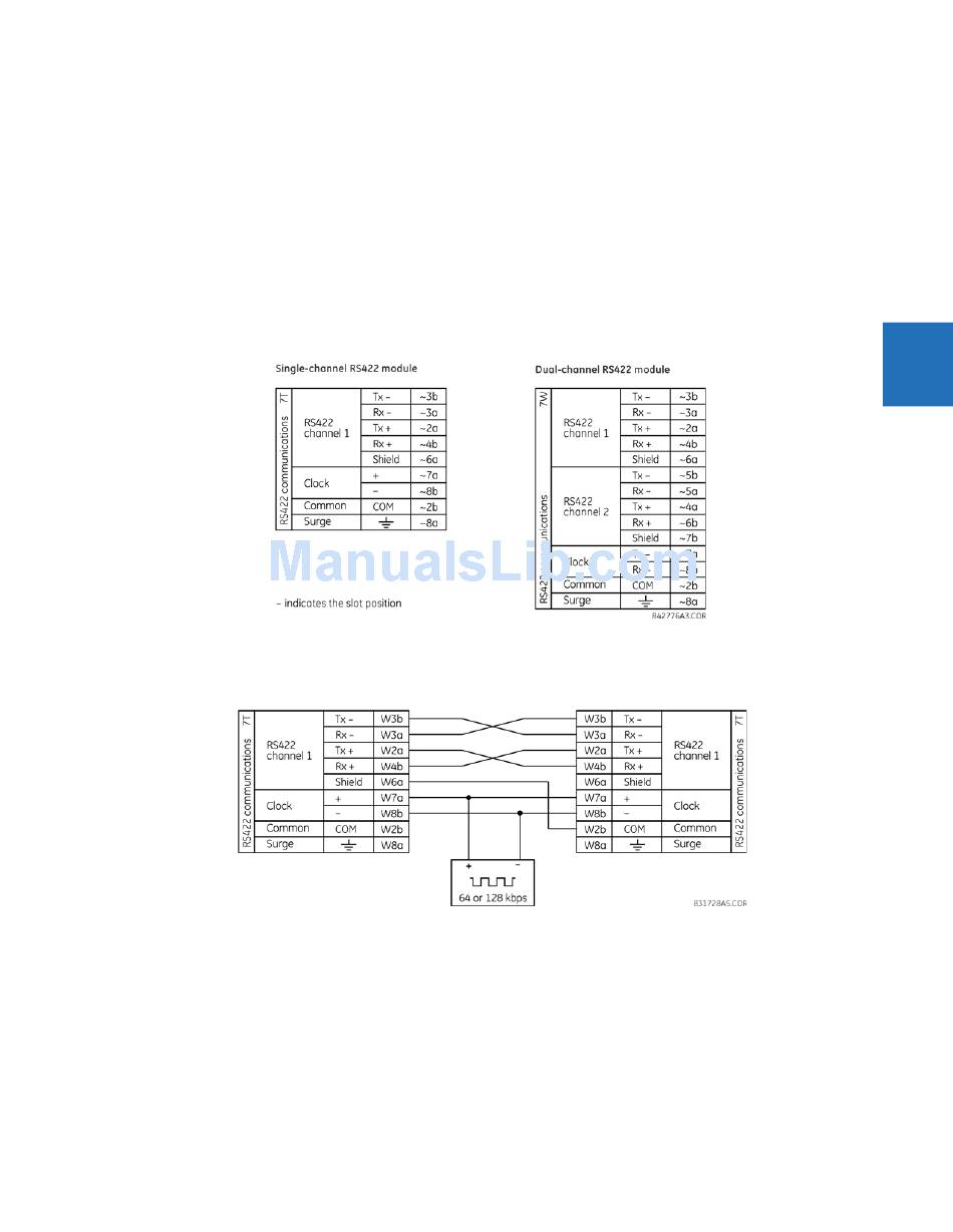 There are two RS422 inter-relay communications modules available: single-channel RS422 (module 7T) and dual-channel