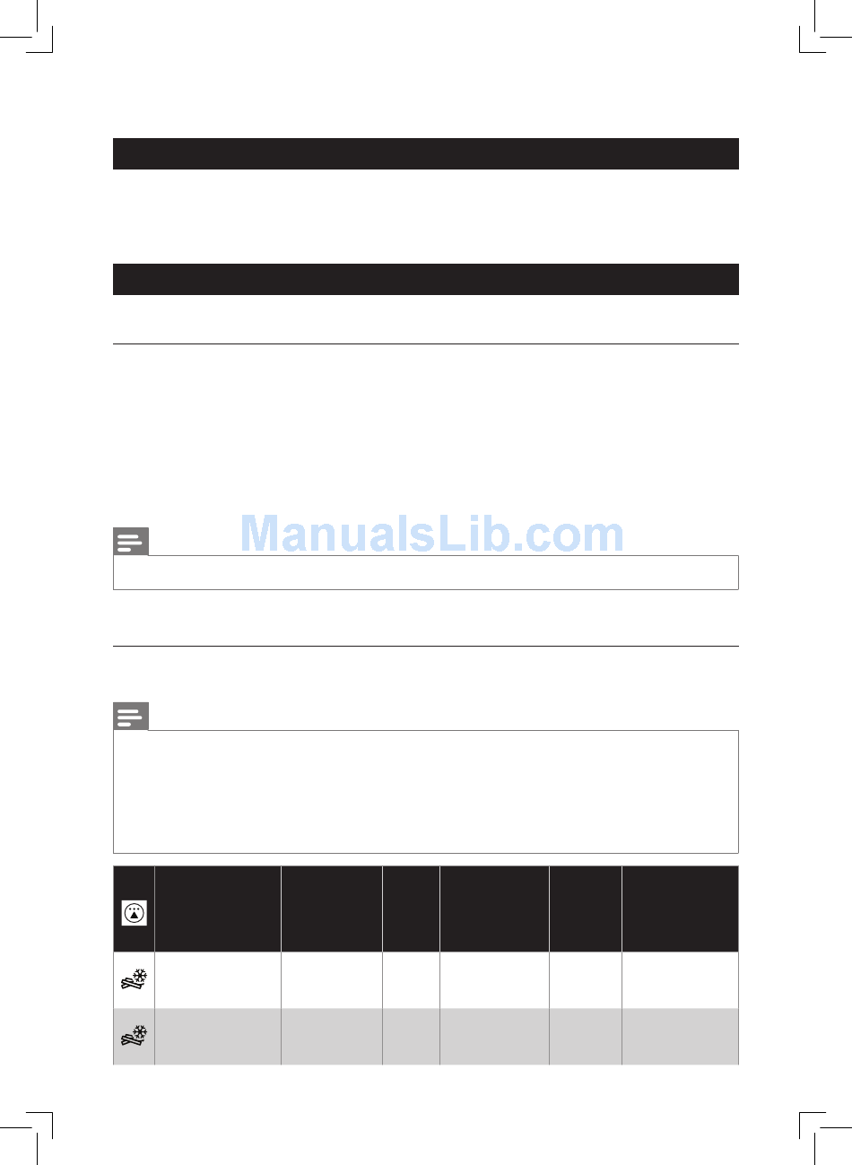 The table below helps you select the basic settings for the types of food you want