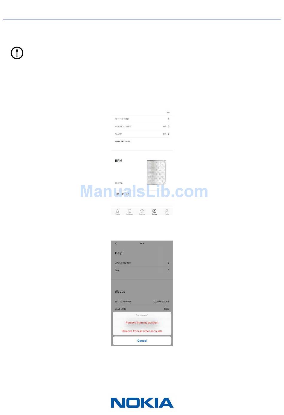 Dissociating your Nokia BPM will not remove any of the data that was synced