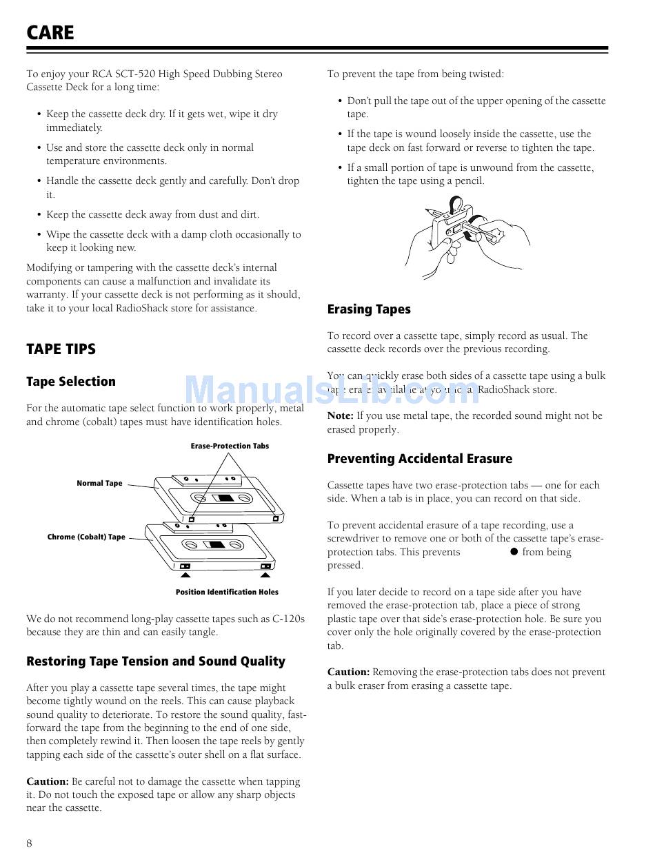 Cassette Player RCA SoundTrak RP-7946 Use And Care Manual