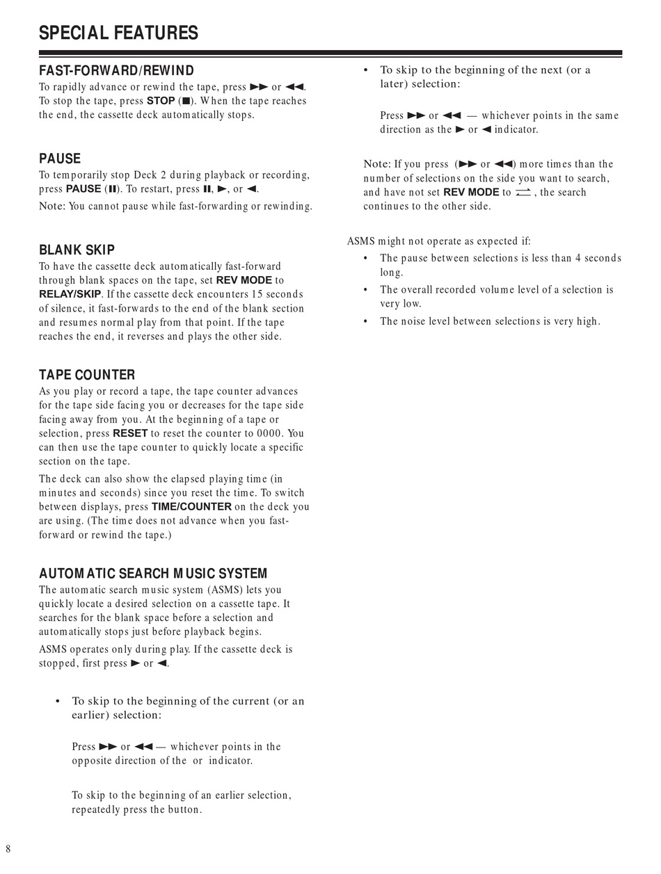 To rapidly advance or rewind the tape, press ¡ or 1.