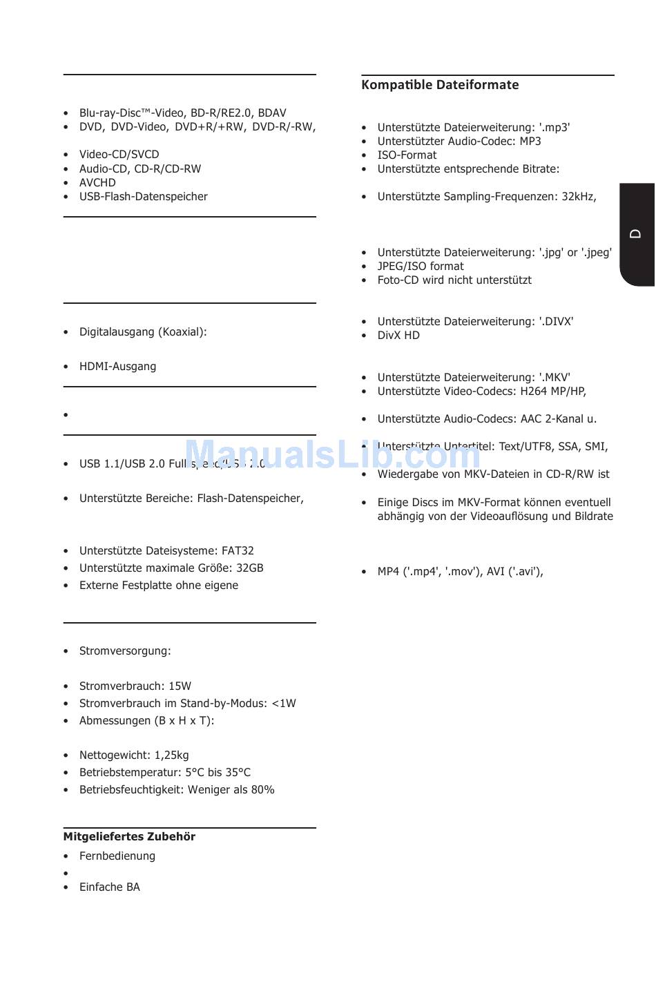 HDMI-Ausgang: 480i/576i, 480p/576p, 720p,