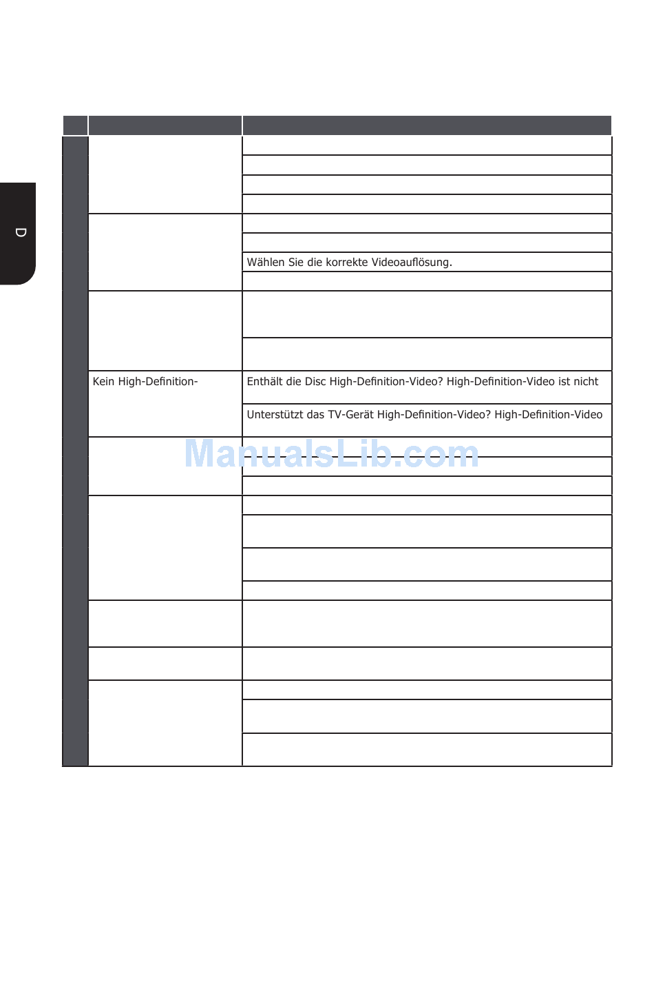 Wenn eine der folgenden Störungen bei der Benutzung dieses Geräts auftritt, suchen Sie in der folgenden
