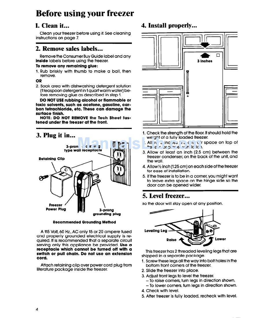 4. AllowY2 inch (1.25 cm] on each side of the freezer