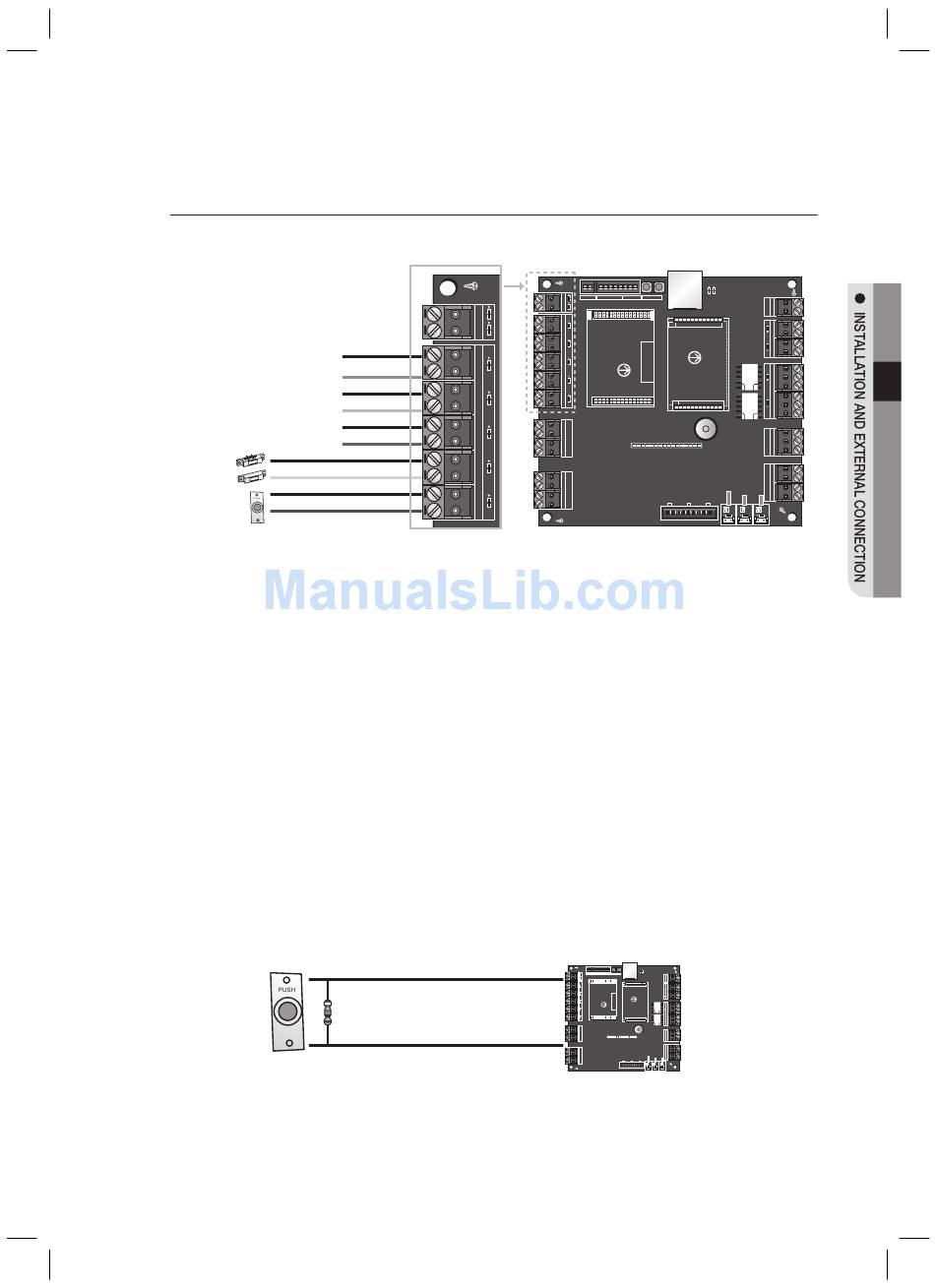 - The Input #1 and Input #2 ports have the Exit button and the Door Contact Sensor installed, while Input #3