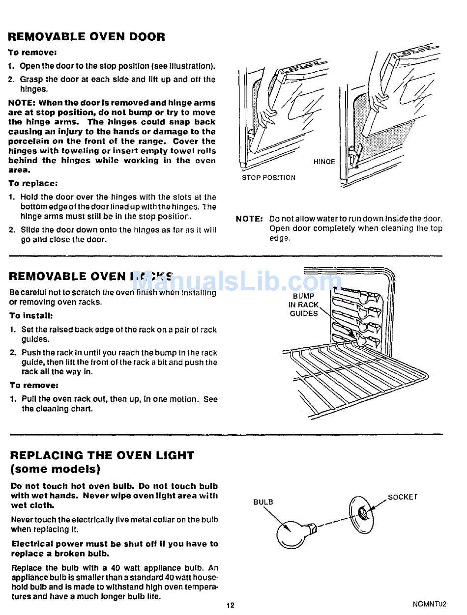 Be careful not to scratch the oven finish when Installing
