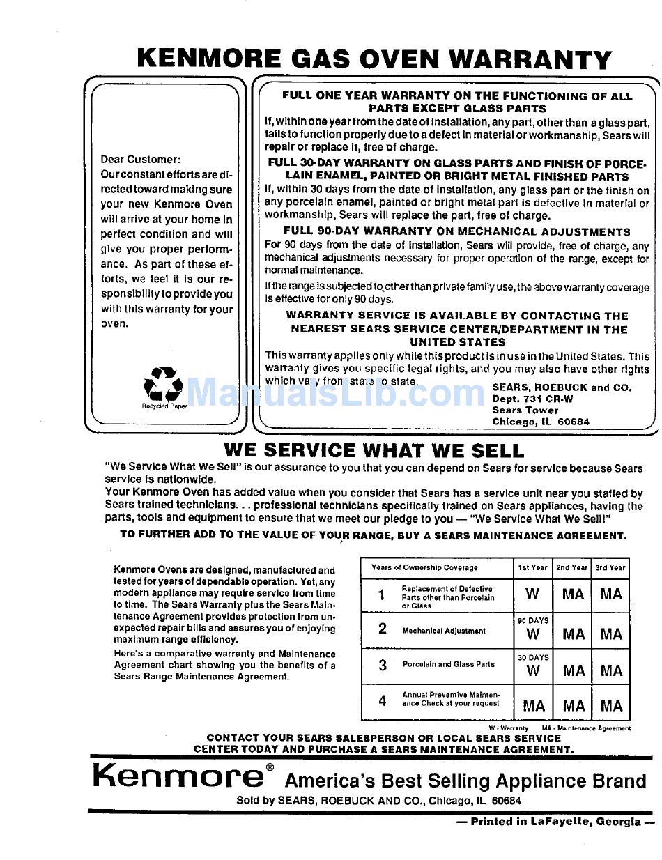 TO FURTHER ADD TO THE VALUE OF YOUR RANGE, BUY A SEARS MAINTENANCE