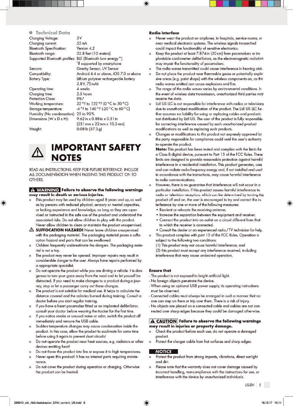 Fitness Trackers Silvercrest 384759 2107 Operation And Safety Notes