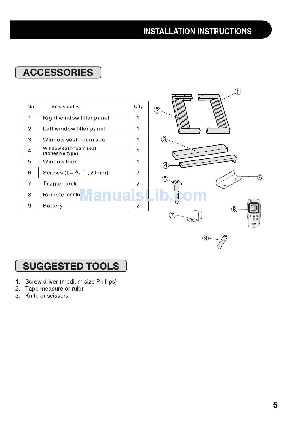 Accessories; Suggested Tools - Sharp 2020215A0343 Installation And Operation Manual