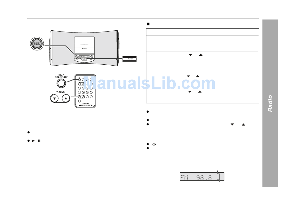 Press the TUNER button on main unit or FUNCTION button