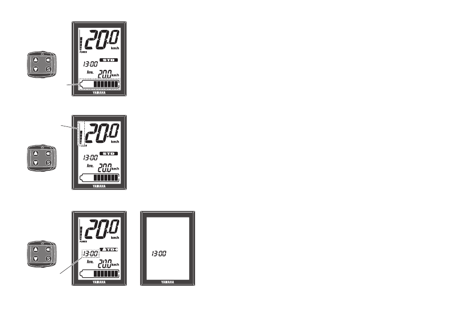 Wenn die e-Bike Systeme nicht in Betrieb sind, wird keins der Segmente des Unterstützungsmessers