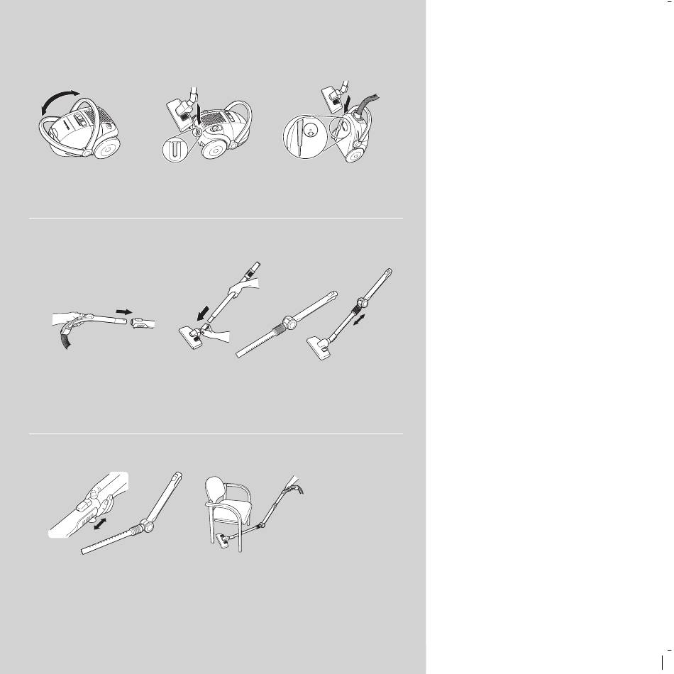 Use the telescopic tube in this position for general vacuum-