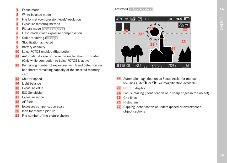Focus Peaking (identifi cation of in sharp edges in the object)