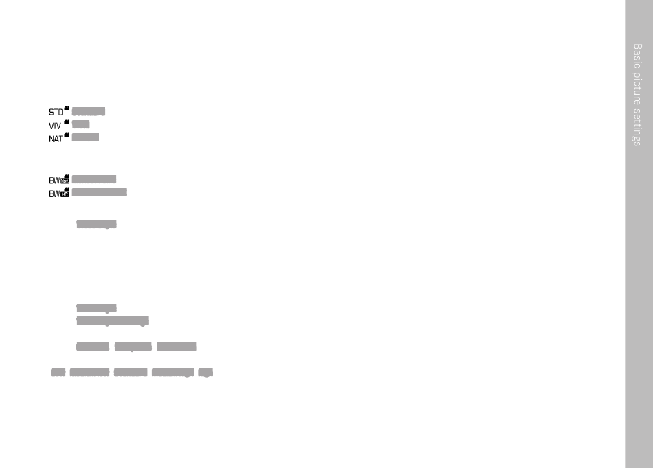 For each profile, the settings for contrast, sharpness and