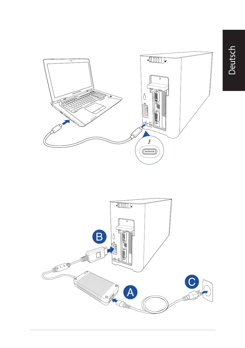 Schließen Sie das mitgelieferte Thunderbolt™ 3 Typ-C Kabel an Ihrem Notebook PC und der XG