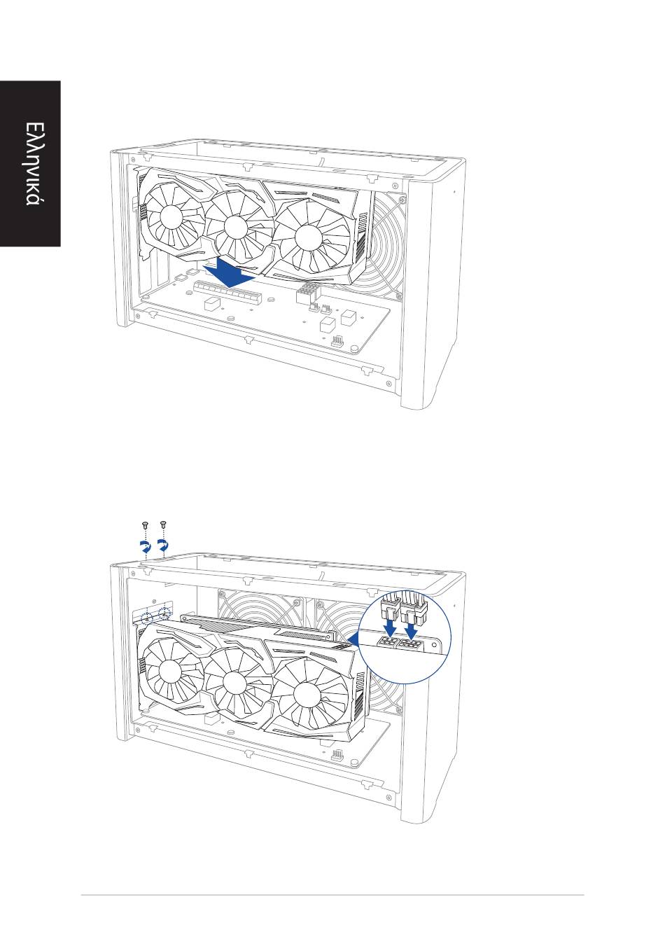 Ευθυγραμμίστε και εισαγάγετε την κάρτα γραφικών στην υποδοχή PCI-E.