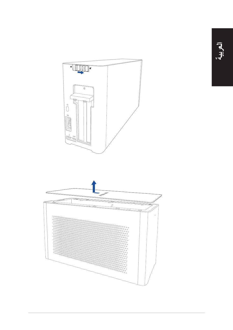 ., ثم ارفع الغطاء العلوي لفتحهXG Station PRO ح ر ِّك الغطاء العلوي تجاه خلفية جهاز