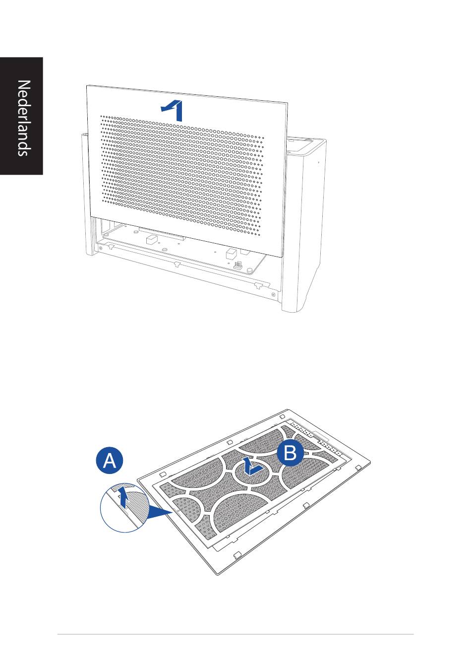 Til de handgreep van de luchtfilter (A) iets op en verschuif dan de luchtfilter en til deze uit de zijklep