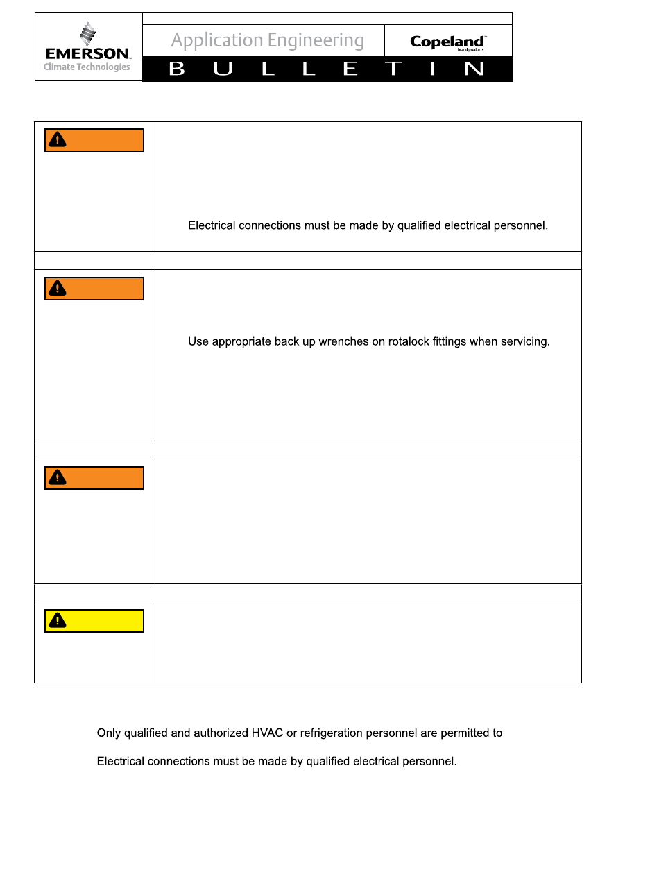 • Refrigerant compressors must be employed only for their intended use.