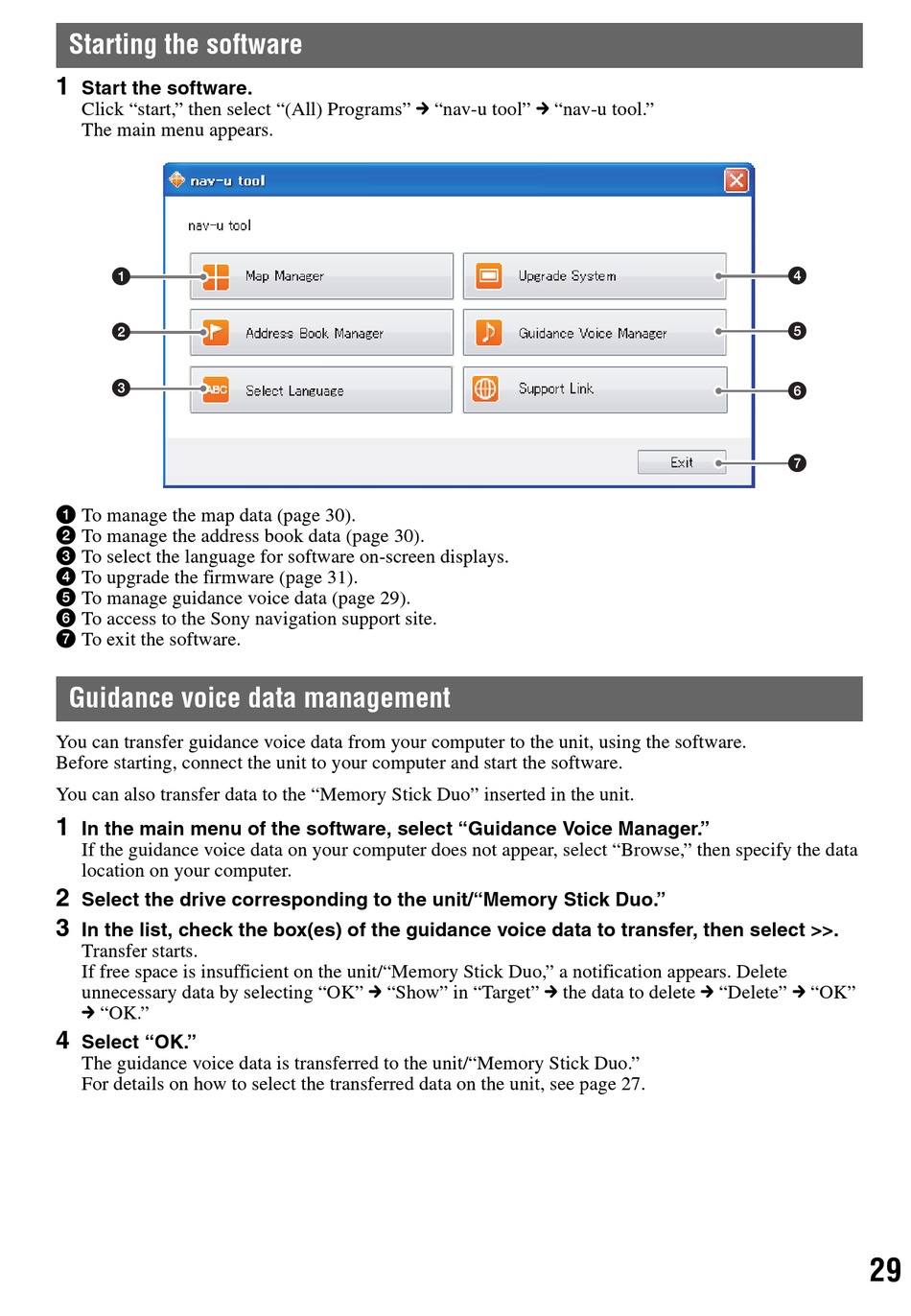 5 To manage guidance voice data (page 29).
