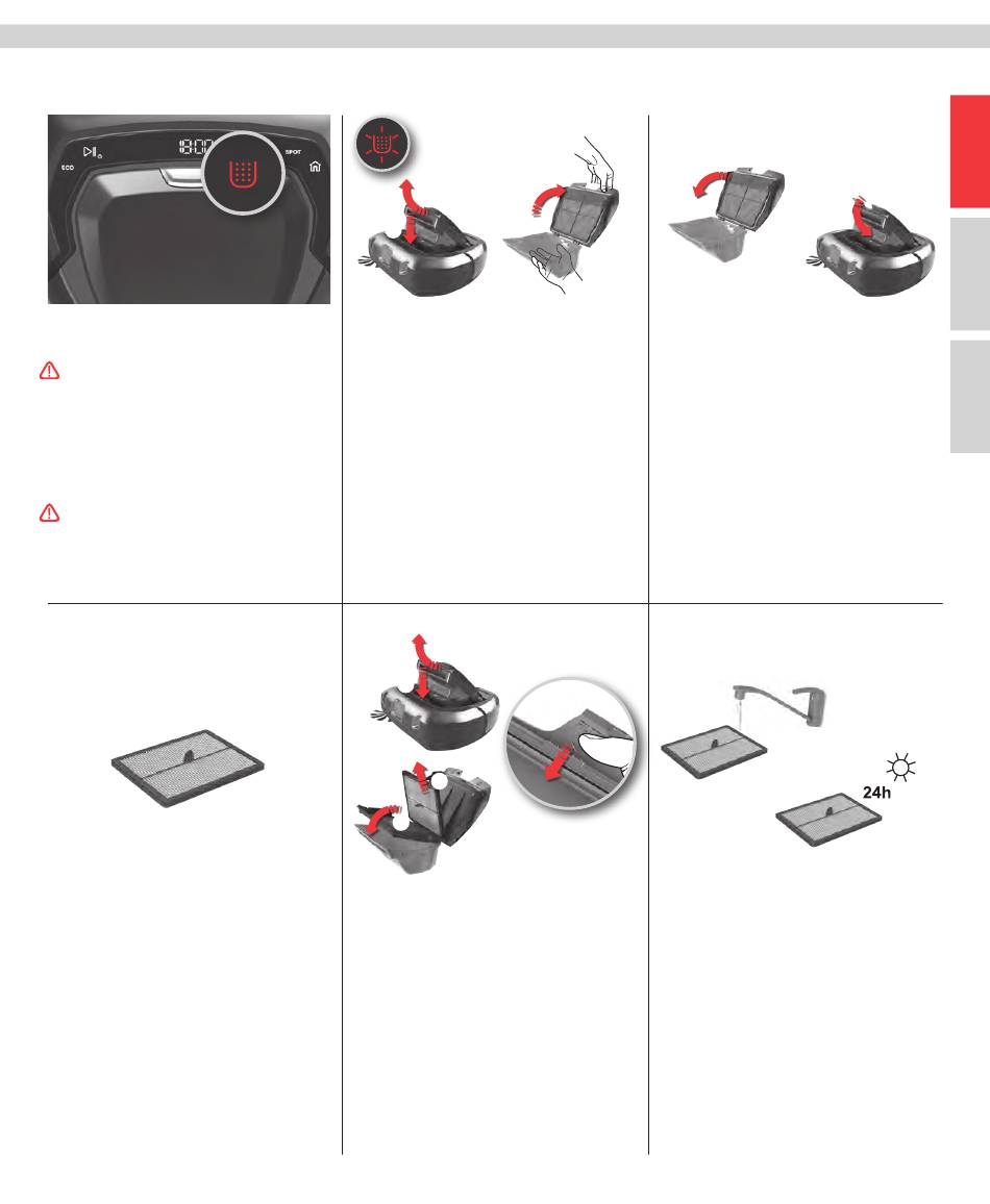 Emptying the Dust container, Replacing/Cleaning the Filter / Leeren des Staubbehälters, Austausch/Reinigung des Filters