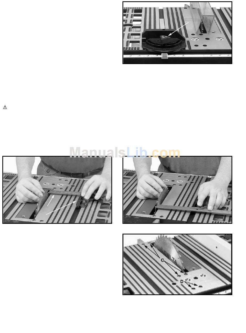 miter gauge can be used in either table slot. For bevel