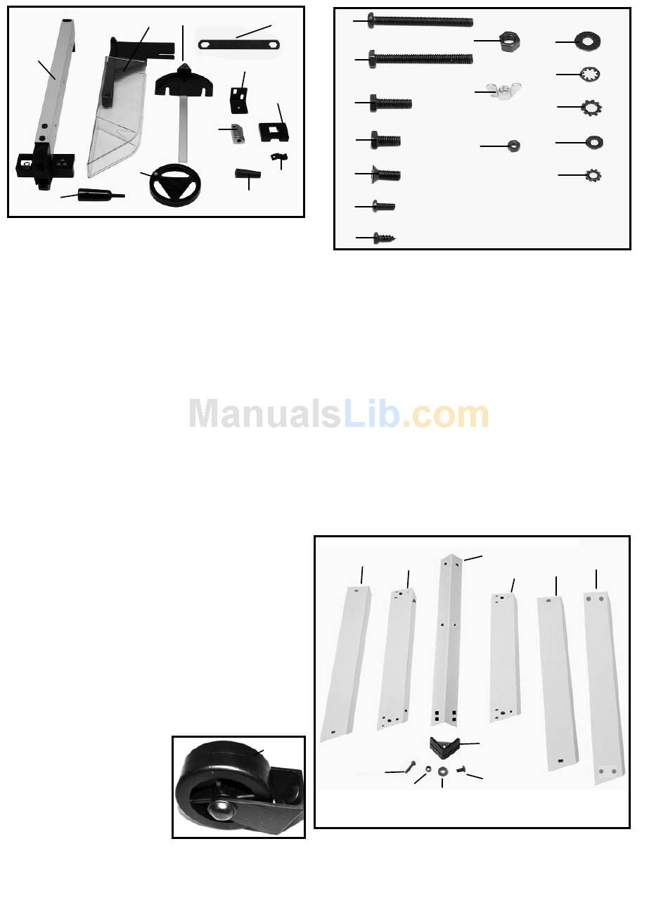 1. Leg (4) (2 with holes at base for attaching wheel
