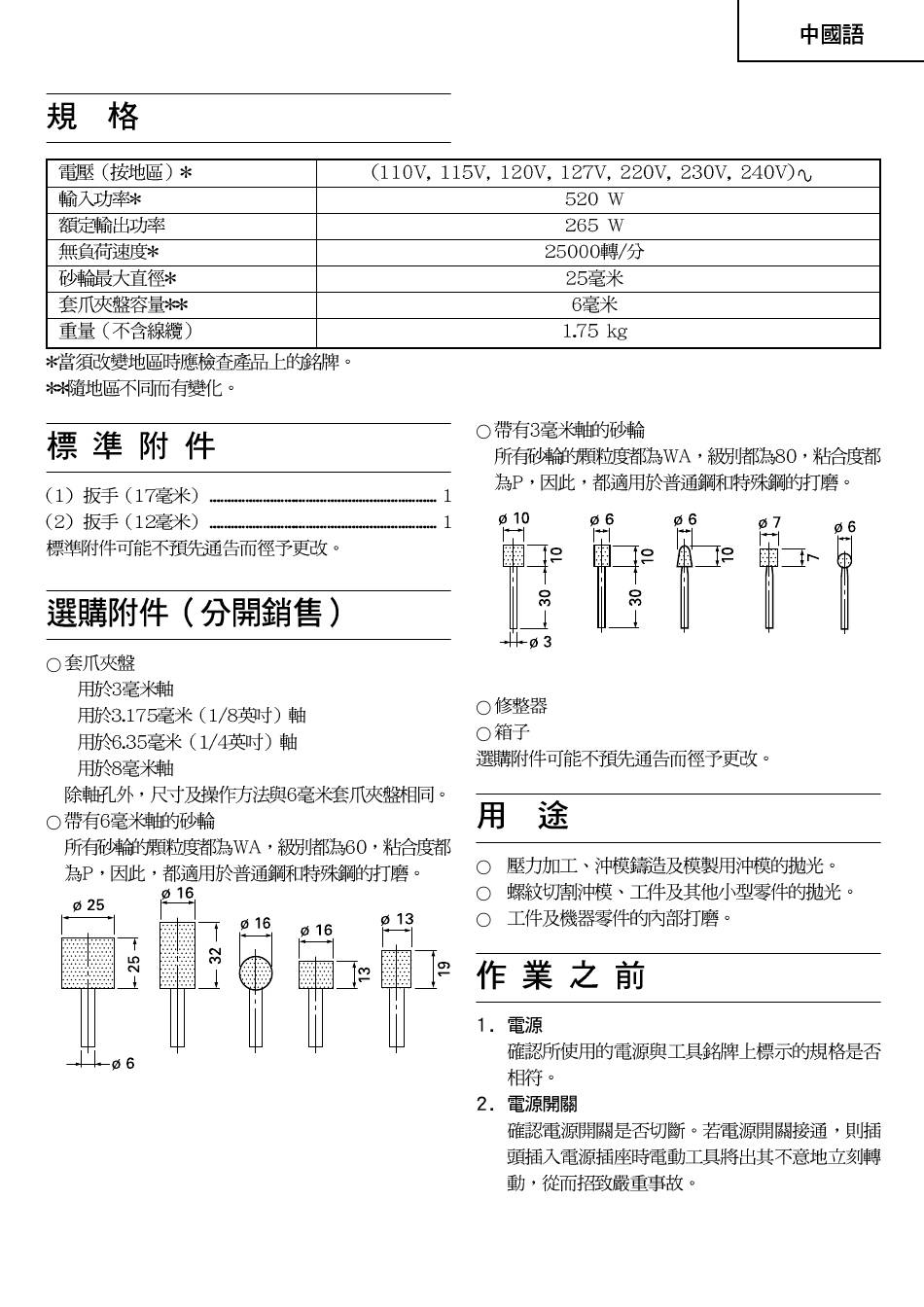 25 mm (1”) portable grinder (19 pages)