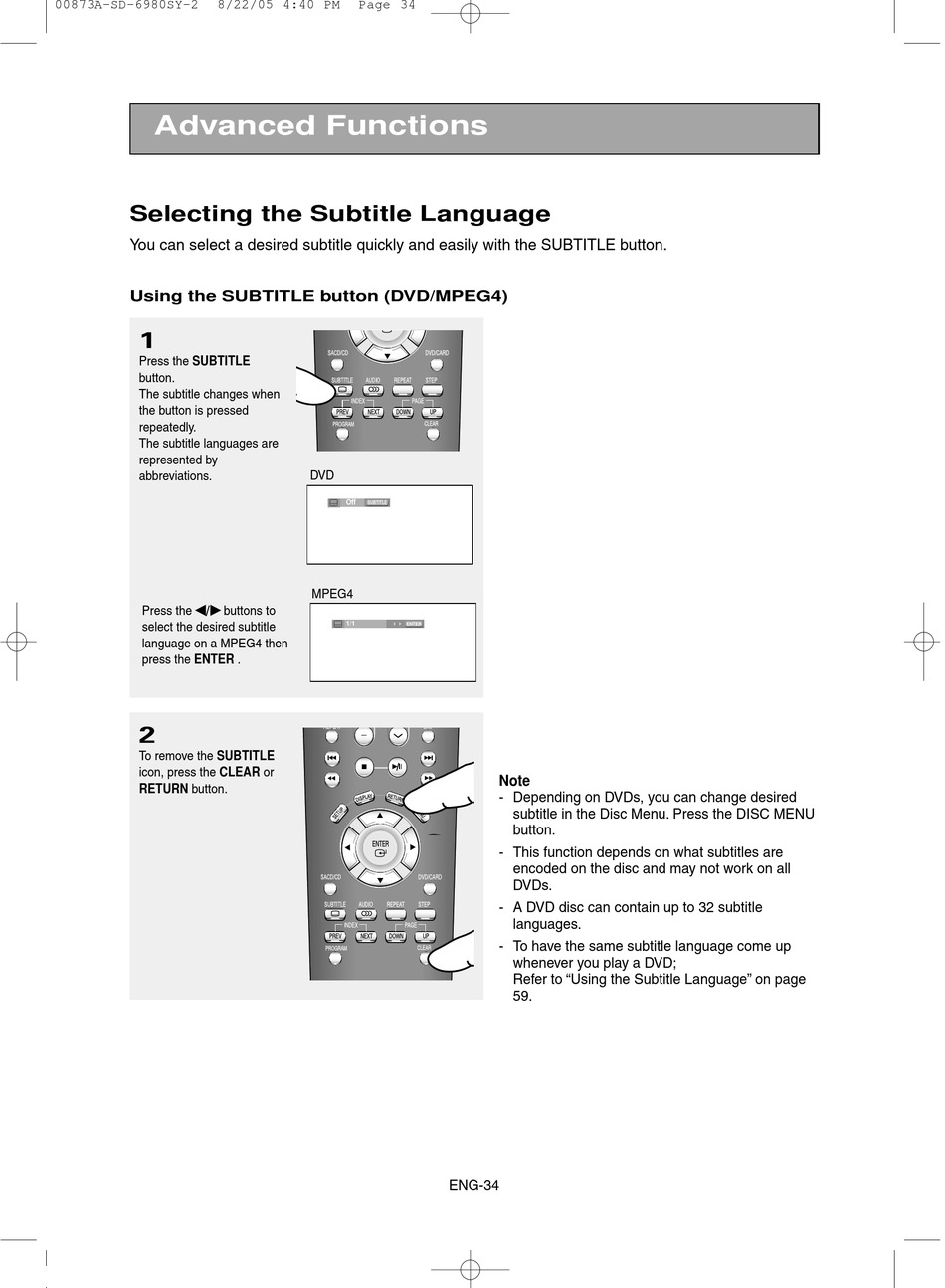 You can select a desired subtitle quickly and easily with the SUBTITLE button.