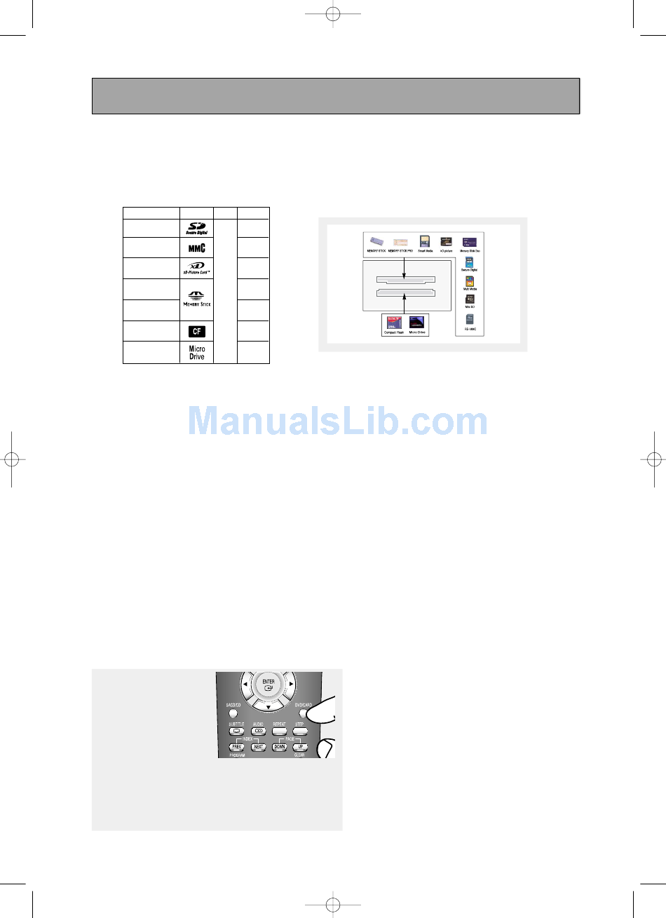 - DVD/CD cannot be played in the Memory Card mode. If you press the DVD/CARD or OPEN/CLOSE button
