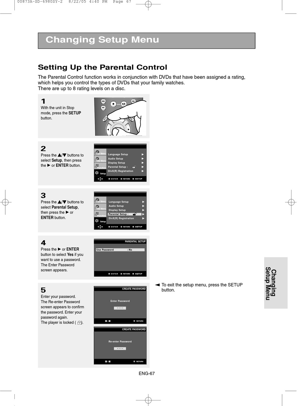 The Parental Control function works in conjunction with DVDs that have been assigned a rating,