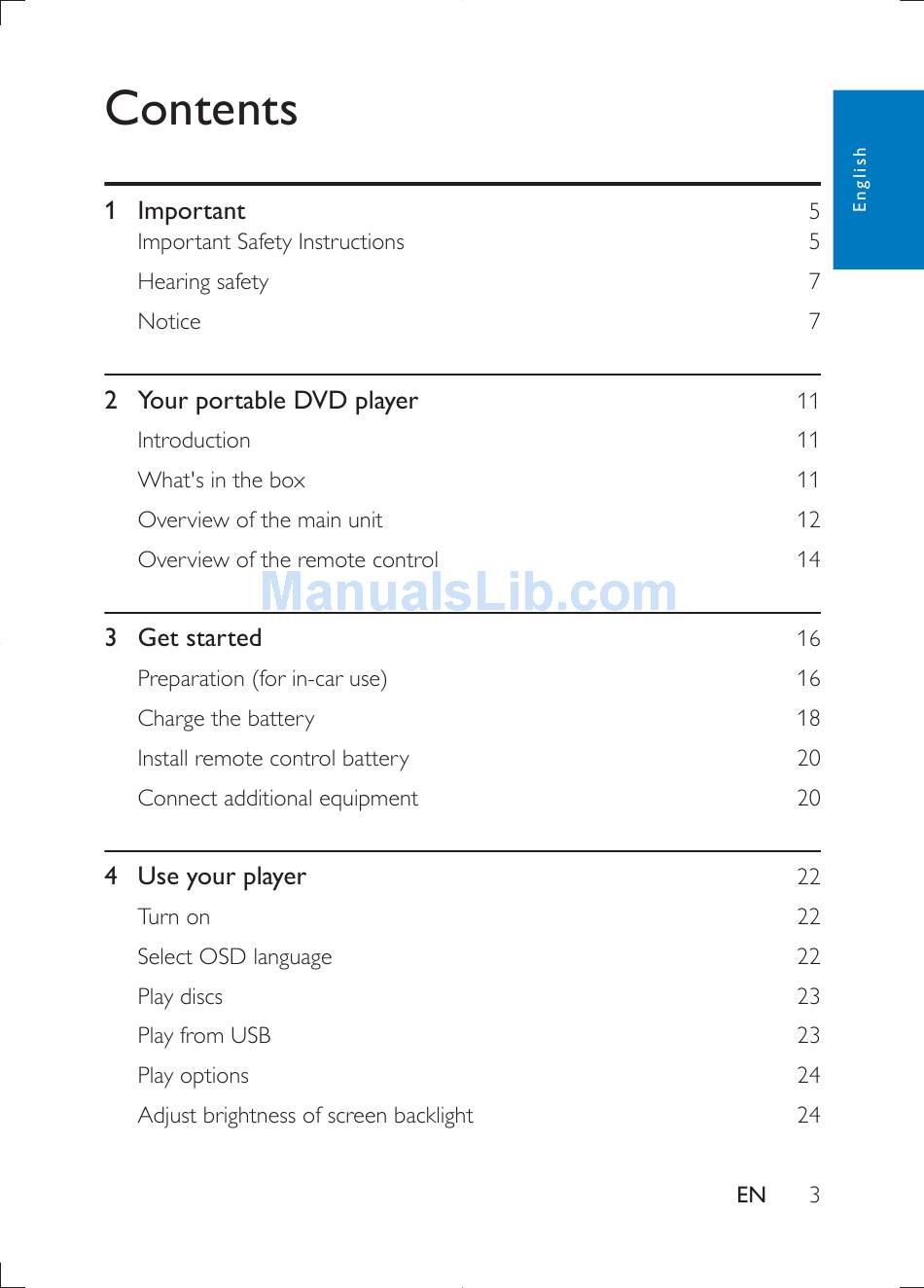 Philips portable dvd player pd9030 23 cm/9" lcd 5-hr play time usb (29 pages)